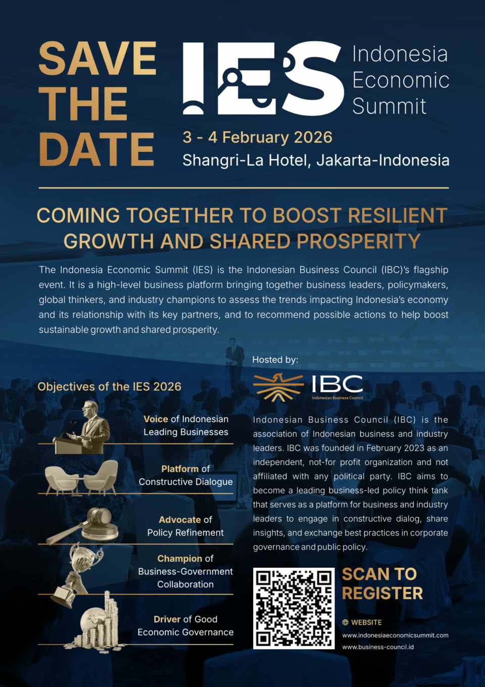 Shangri La Hotel JakartaThe Indonesia Economic Summit (IES) is the Indonesian Business Council (IBC) annual flagship event. IES is a high-level forum designed to bring together international business leaders, policymakers, thinkers, and industry...